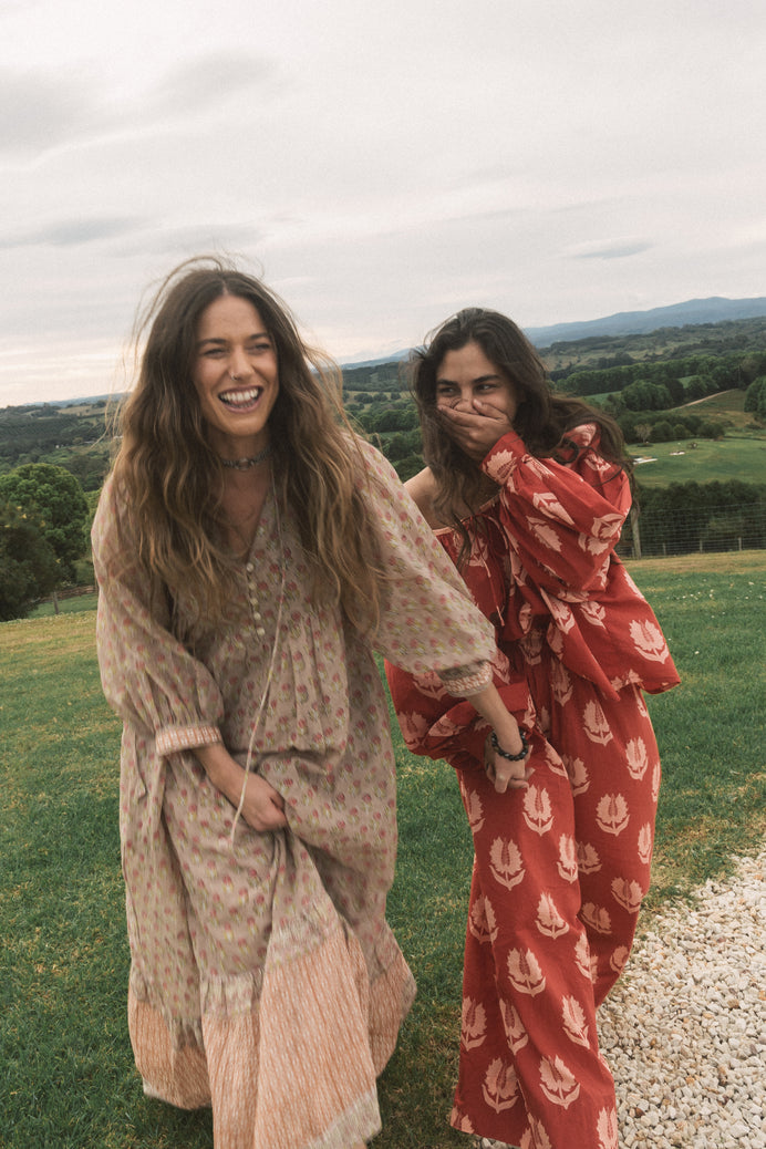 I love how considered DOI is as a brand. Details like the fact that there are no collections released rather just one product at a time just makes so much sense yet it’s so rare to see! The thing I adore most though, is the traditional hand block printing. I appreciate the time and skill involved in one set of hands creating such intricate work. How magic and special is that! My favourite DOI design! The Binita mini dress would have to be my fave design. I can’t go past a full length balloon sleeve and I’m so drawn to the colour purple at the moment. Anything I can chuck on and wear barefoot with a mum bun and still feel beautiful in is gold in my wardrobe!