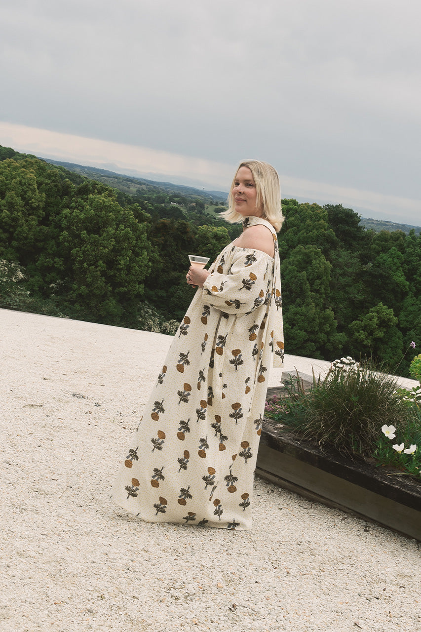 Inspired by a vintage silhouette and ethically crafted from 100% linen, the Dahlia maxi is the essential luxury dress we’ve been dreaming of. Worn with a matching tie around the waist or without for a more relaxed look, her flowing silhouette and billowy sleeves make the Dahlia dress our new go-to for effortless, elevated style. Featuring convenient side pockets, this dress is designed to be worn on or off the shoulders, with the length adjusting slightly depending on your styling choice.