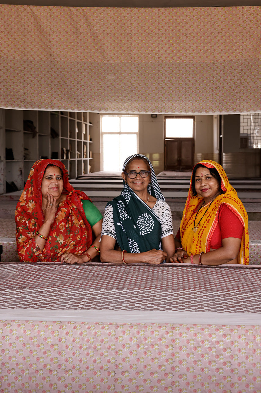 • Craft: Hand‑blocked and thoughtfully constructed using nine blocks. A labour of love, ensuring each dress is truly unique.